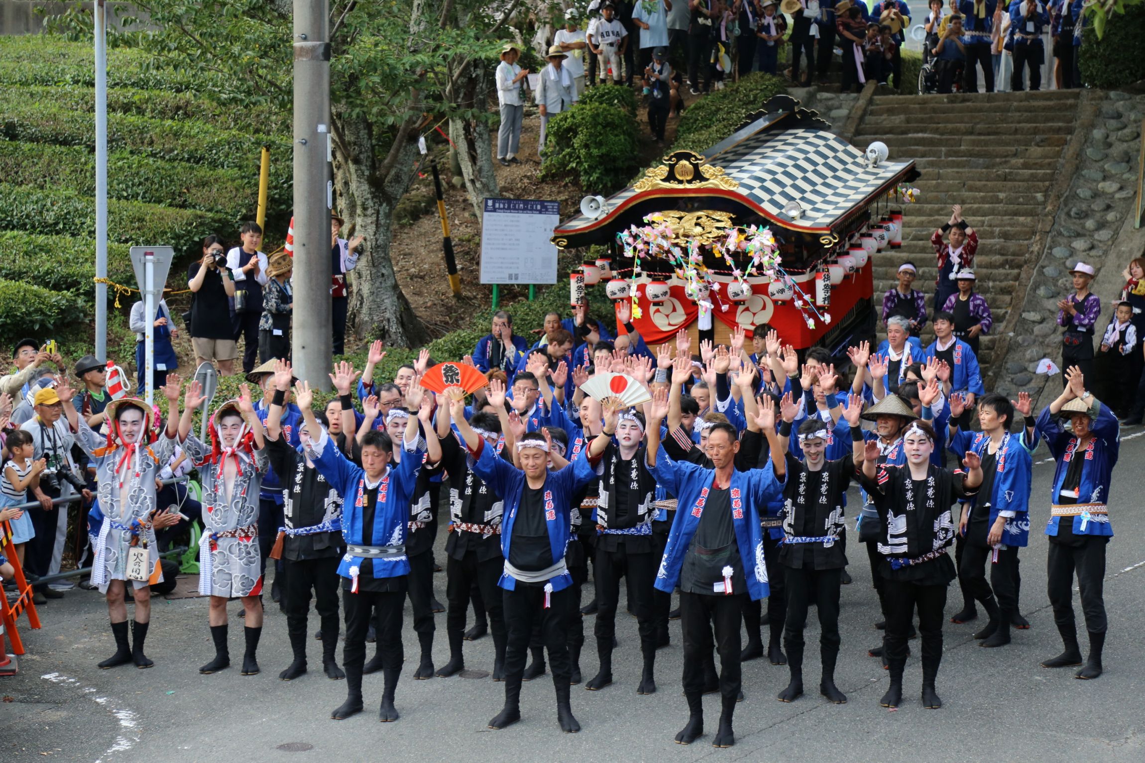 市の無形民俗文化財に指定されている潮海寺祇園囃子が鳴り響く中、若衆らが傾斜およそ40度の石段の上で慎重に屋台を進め、見事に成功すると、周囲から大きな歓声と拍手が沸き起こりました。
